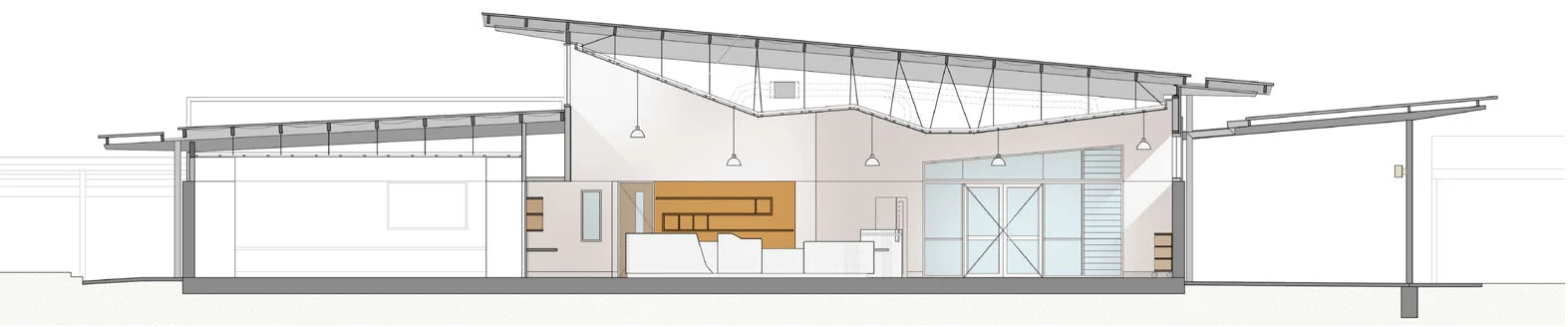 In spite of suffocating public school design guidelines this building finds a playful spirit. The undulating plywood landscape on the Library ceiling that climbs up to sky views suggests possibility and the beyond. On a project that frequently seemed characterised by rules and limitations, this design was still able to ask: What is the lid we put on learning?